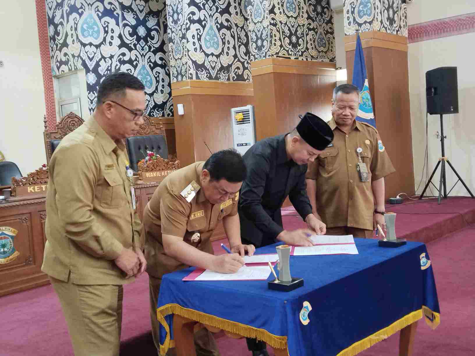 Rapat paripurna ditutup dengan penandatanganan nota kesepakatan perubahan KUA dan perubahan PPAS APBD Tahun Anggaran 2025 oleh Pj Wali Kota Pangkalpinang dan pimpinan DPRD.