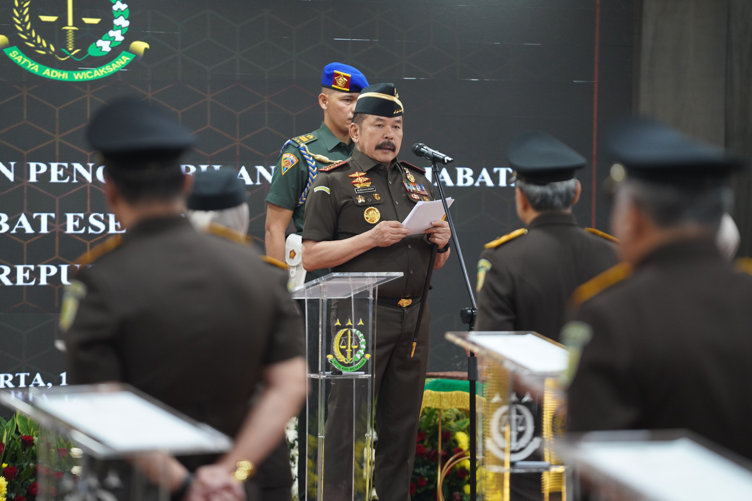 Menutup sambutannya, ST Burhanuddin menyampaikan apresiasi kepada para pejabat lama atas pengabdian yang telah diberikan, serta berharap pejabat baru dapat menjalankan tugas dengan penuh tanggung jawab dan kebijaksanaan.