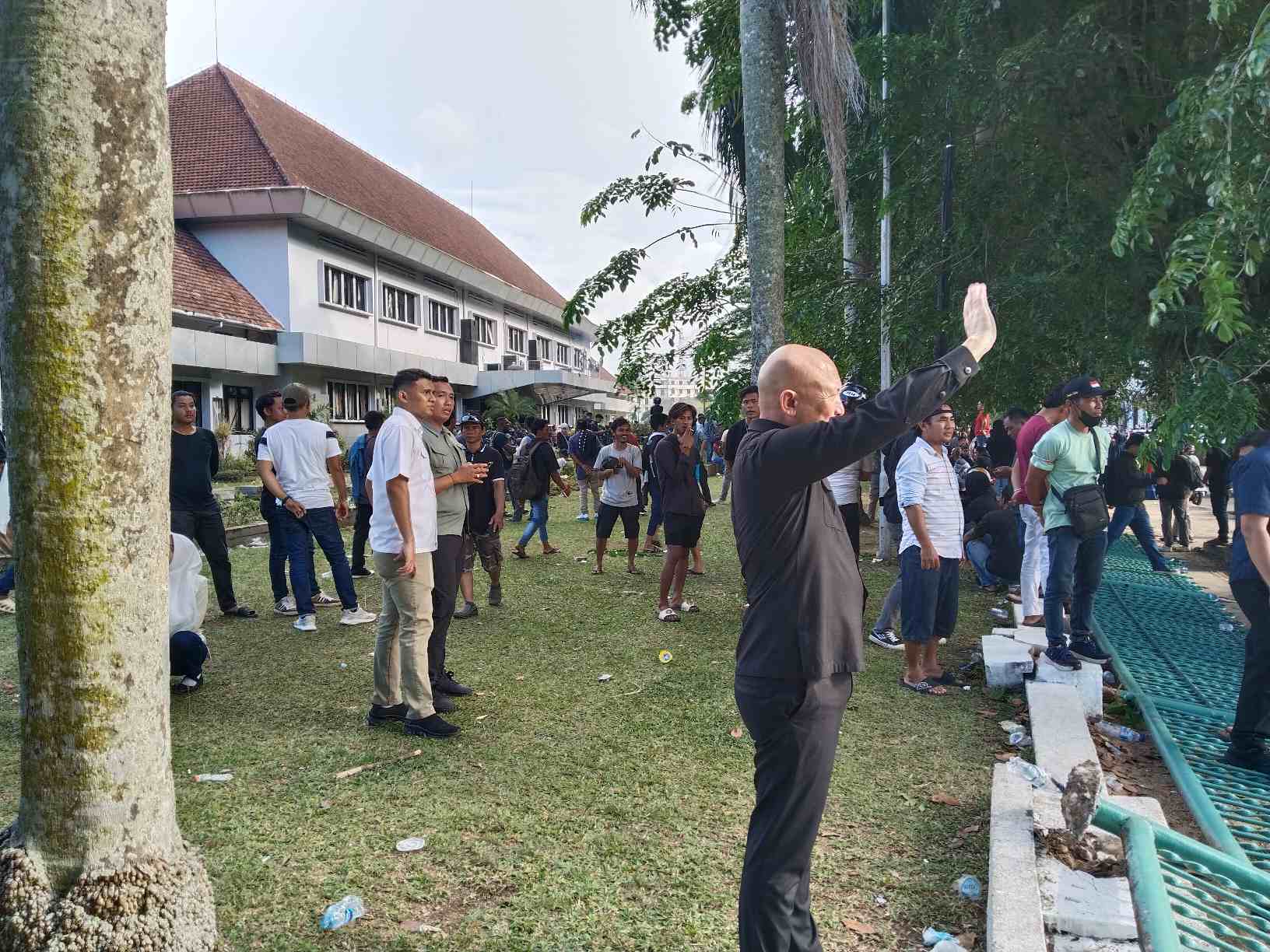 Didit tampak mendampingi Gubernur Babel, Hidayat Arsani, dan Direktur PT Timah Tbk dalam menerima langsung aspirasi massa. Suasana aksi berjalan tertib dengan penjagaan aparat kepolisian dan TNI.