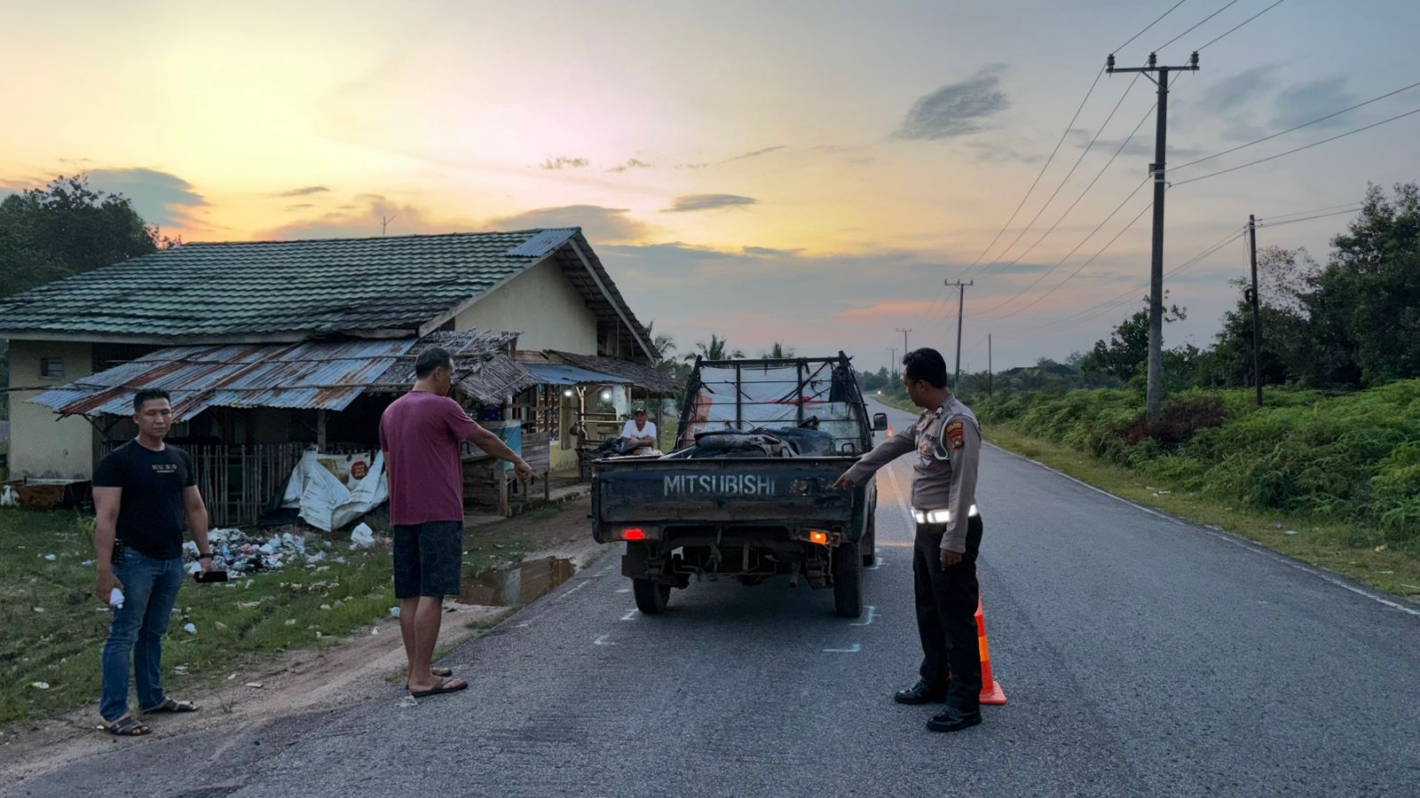 Caption Foto : Petugas Sat Lantas Polres Bangka Barat melakukan olah TKP kecelakaan di Jalan Raya Bakit, Desa Sekar Biru, Kecamatan Parit Tiga, Minggu malam (3/10/2025).