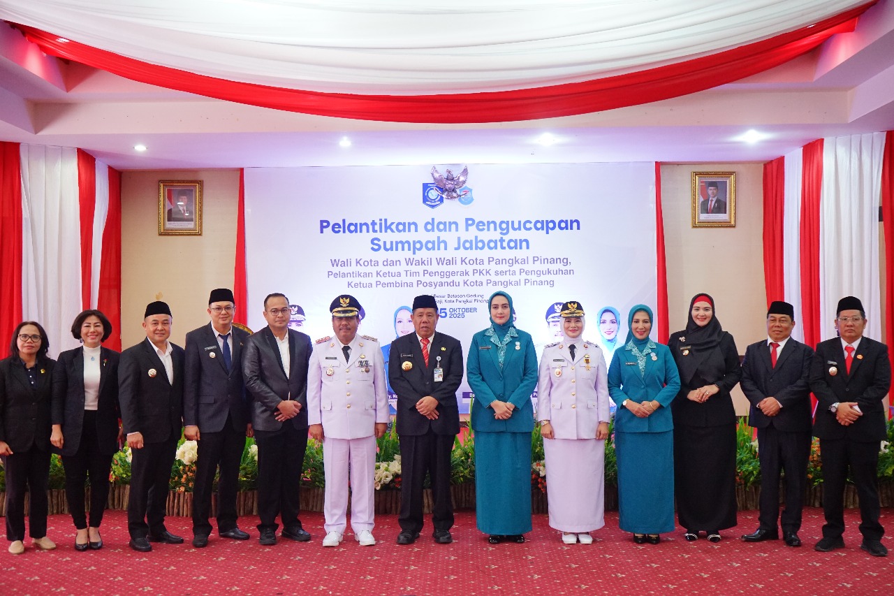 Wartapublik com, Pangkalpinang– Pemerintah Kota Pangkalpinang menggelar acara Pelantikan dan Pengucapan Sumpah Jabatan Wali Kota dan Wakil Wali Kota Pangkalpinang periode 2025–2030 di Lt. 1 Balai Besar Betason Kantor Wali Kota Pangkalpinang, Rabu (15/10/2025).