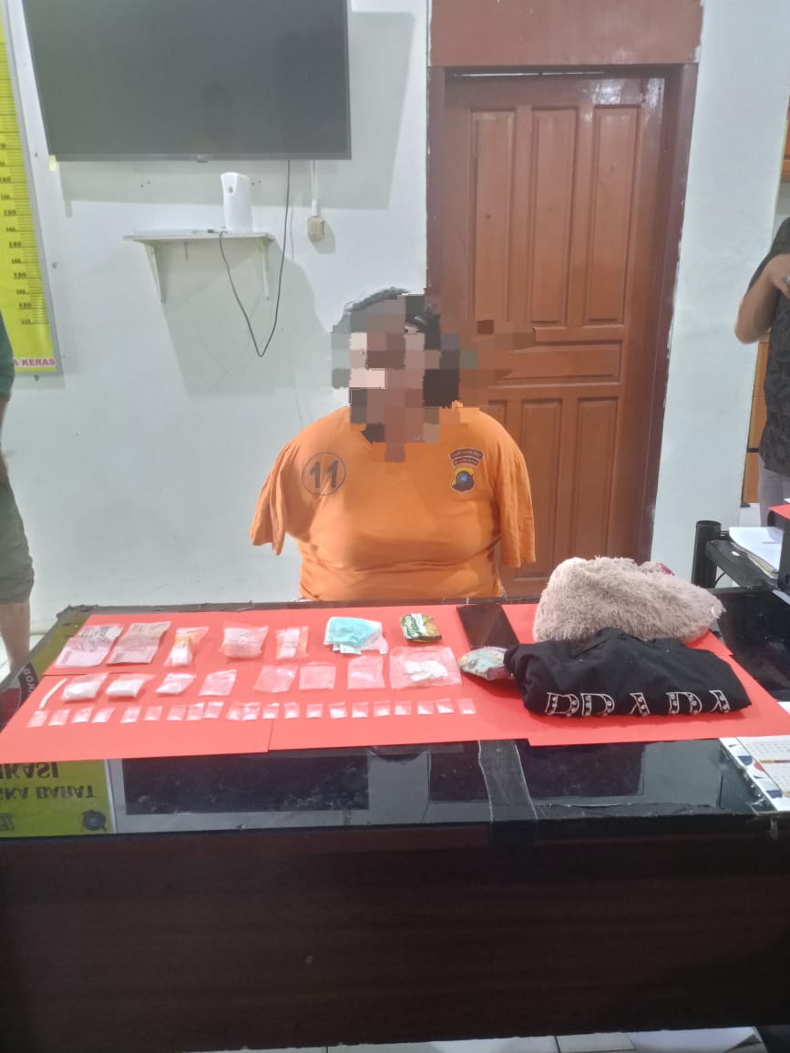 Penangkapan dilakukan sekitar pukul 16.00 WIB setelah polisi menerima laporan masyarakat mengenai aktivitas mencurigakan di sebuah rumah kontrakan. Saat dilakukan penggeledahan yang disaksikan Ketua RW setempat, petugas menemukan 4 paket besar dan 21 paket kecil sabu yang disembunyikan di dalam dompet kain serta 1 timbangan digital di dalam bantal bulu.