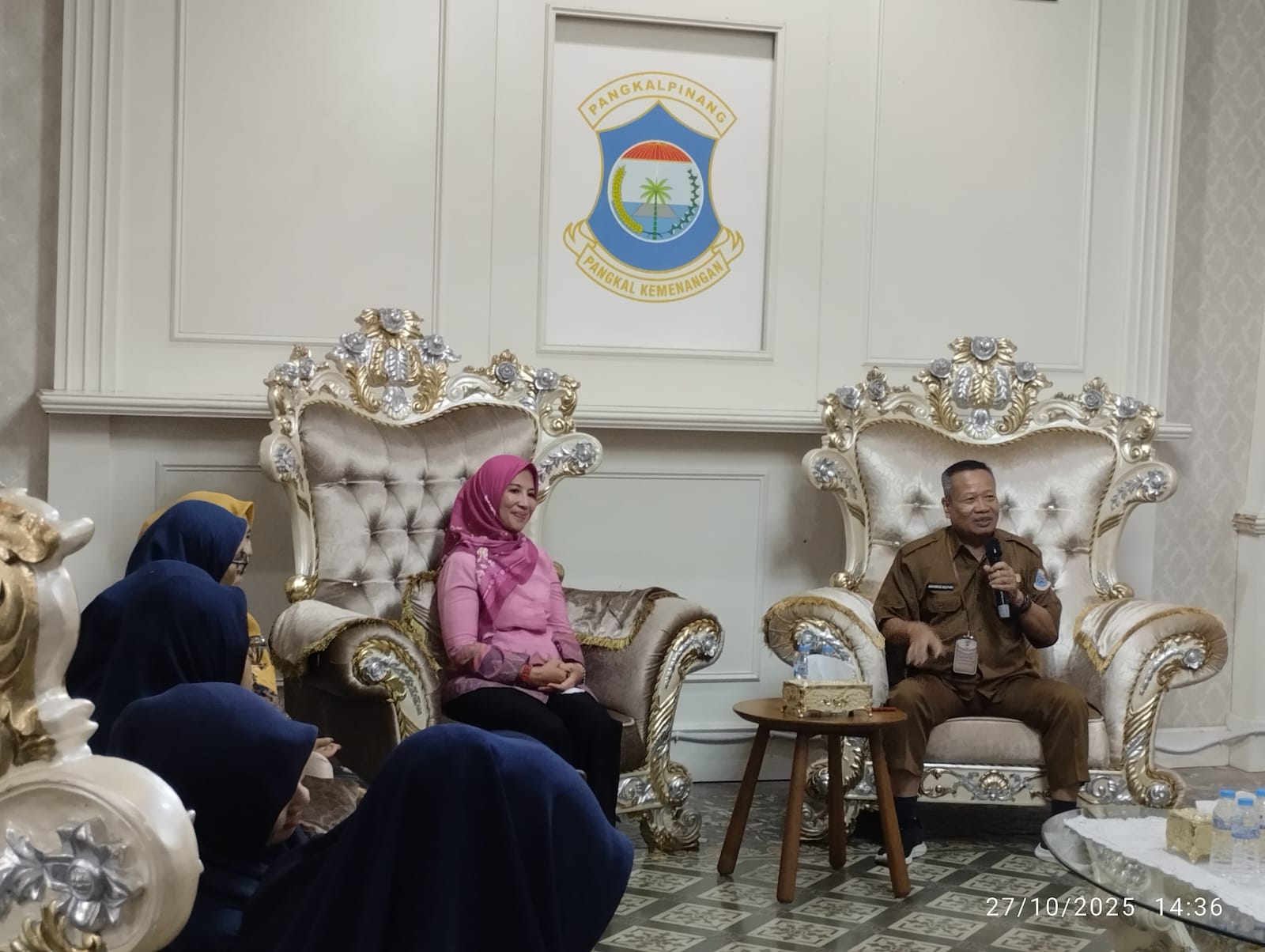 Caption Foto : Ketua TP PKK Kota Pangkalpinang Hj. Susanti bersama siswa SMA Negeri 1 Puding Besar saat kunjungan edukatif di Rumah Dinas Residen Wali Kota Pangkalpinang, Senin (27/10/2025).