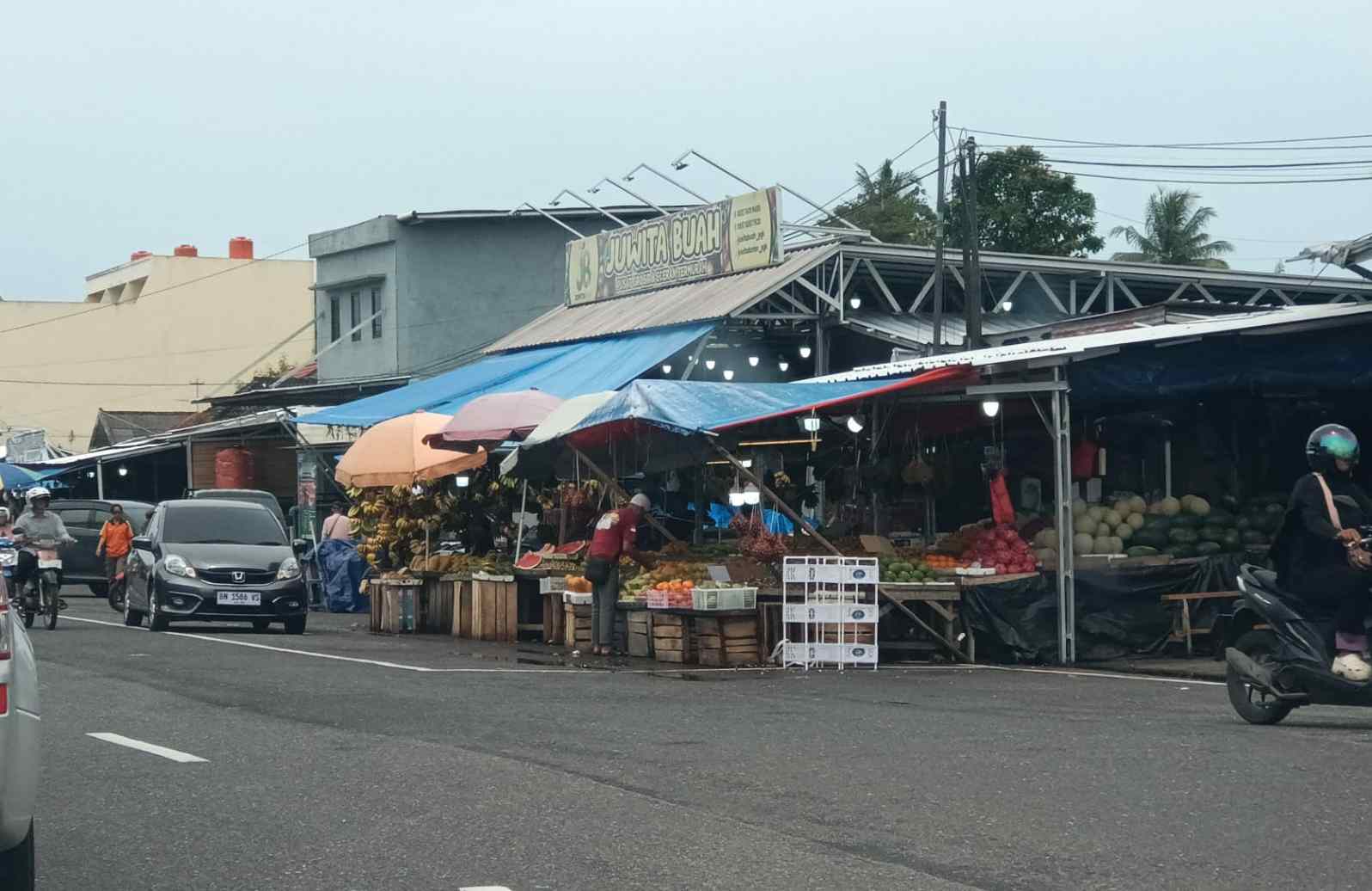 Pedagang Buah Kuasai Bahu Jalan, Pasar Pagi Pangkalpinang Kian Semrawut