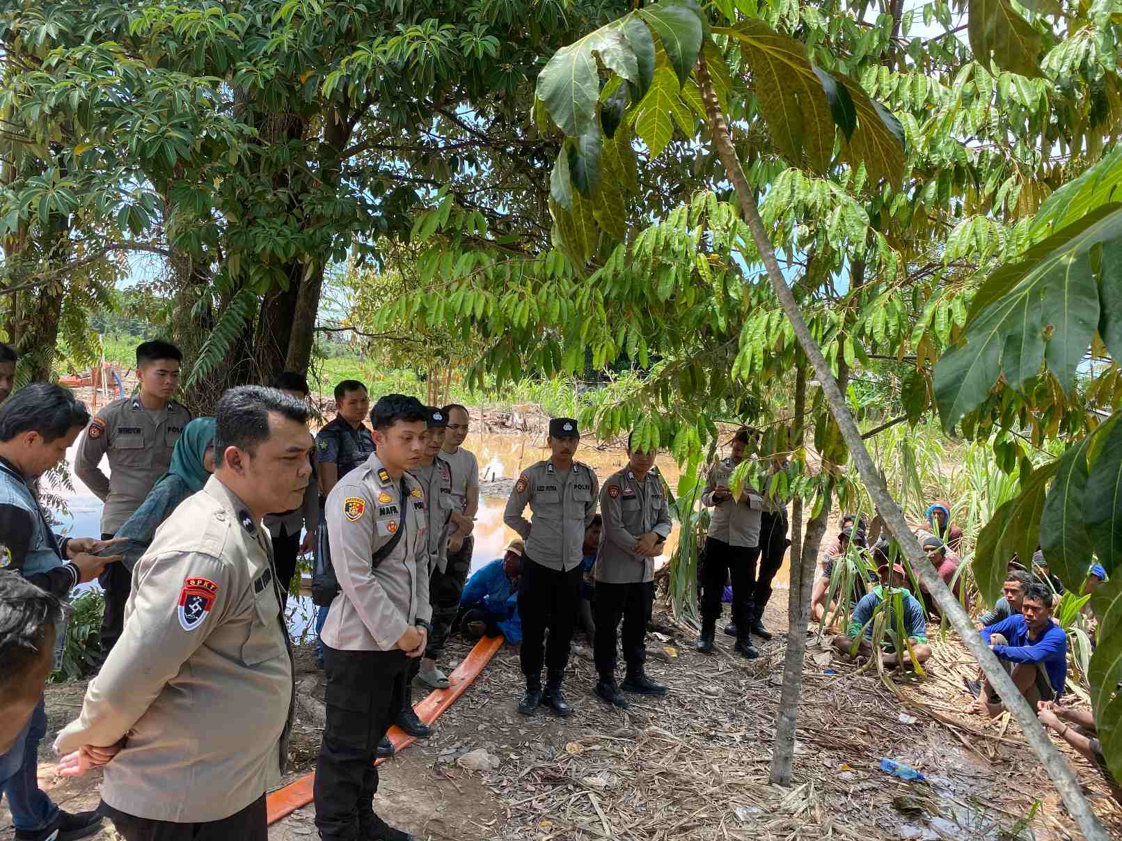 Caption Foto: Polsek Bukit Intan bersama Polresta Pangkalpinang saat menghentikan aktivitas tambang ilegal di kawasan Air Mawar, Sabtu (8/11/2025).