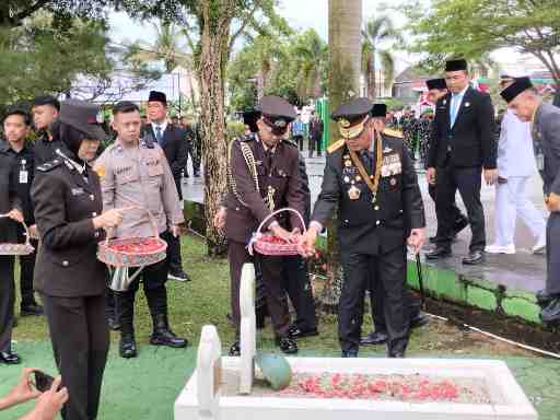Caption Foto: Wali Kota Pangkalpinang, Saparudin, menabur bunga di Taman Makam Pahlawan Pawitralaya usai upacara peringatan Hari Pahlawan Nasional ke-80, Senin (10/11/2025).