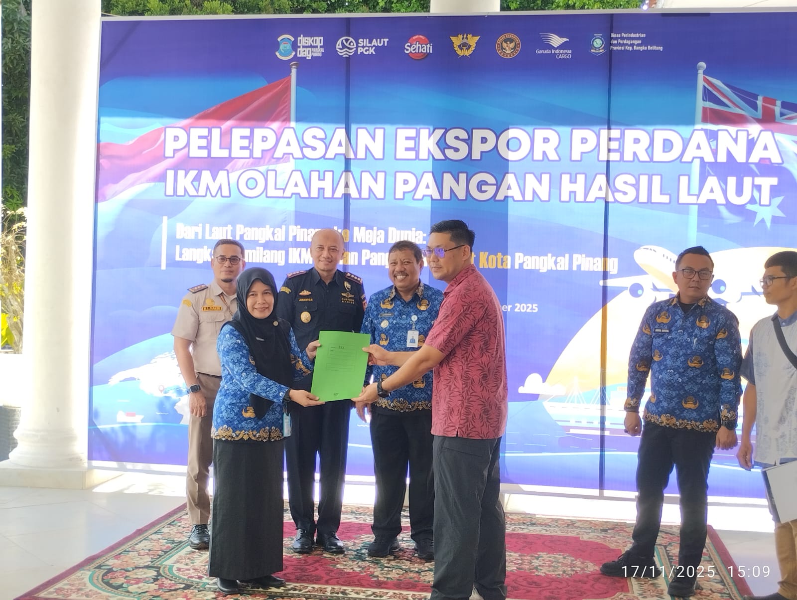 Wartapublik.com, Pangkalpinang — Kepala Dinas Perdagangan dan Koperasi (Disperindagkop) Kota Pangkalpinang, Andika Saputra, turut mendampingi Wali Kota Pangkalpinang Saparudin dalam pelepasan ekspor perdana produk olahan IKM Duo Ayu ke Sydney, Australia. Prosesi pelepasan dilakukan di Rumah Dinas Wali Kota pada Senin (17/11/25).