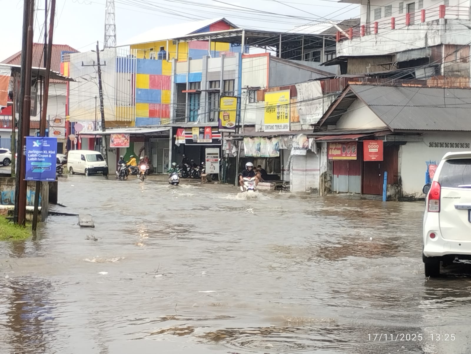 Wartapublik.com, Pangkalpinang – Hujan deras yang mengguyur Kota Pangkalpinang selama sekitar 25 menit, mulai pukul 13.00 hingga 13.25 WIB, kembali menyebabkan kawasan Theresia terendam banjir dan sulit dilalui kendaraan, Senin (17/11/25).