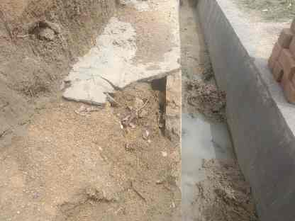 Pantauan di lapangan, Kamis (25/12/2025), menunjukkan kondisi fisik siring yang memprihatinkan. Terlihat retakan pada dinding saluran, lantai beton mengelupas, pasangan bata tidak rapi, kemiringan dinding tidak seragam, serta tanah dasar saluran yang masih berlumpur dan diduga tidak dipadatkan secara maksimal.