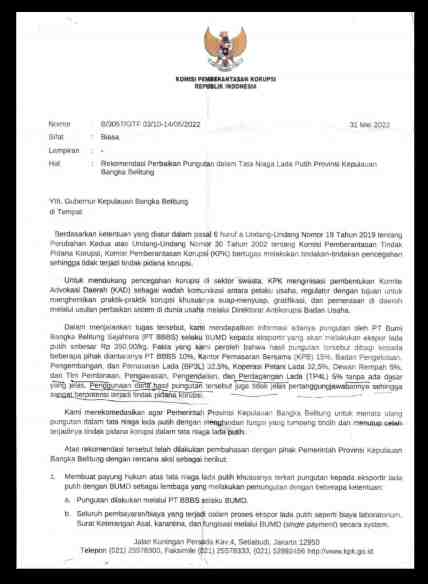 Prof Udin justru mengungkapkan bahwa hasil dari kunjungan KPK tersebut berupa rekomendasi positif yang menekankan pentingnya perbaikan sistem, tata kelola, serta pengawasan dalam rantai tata niaga lada putih agar lebih transparan dan memberikan nilai tambah bagi petani.