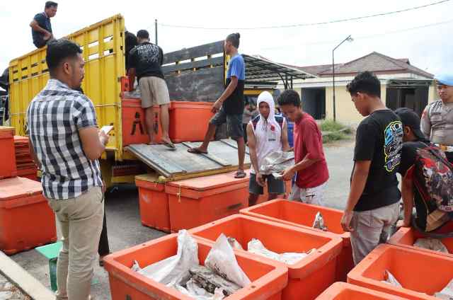 Petugas mencurigai satu unit truk yang hendak menyeberang ke luar Pulau Bangka dengan muatan yang disamarkan sebagai komoditas perikanan.