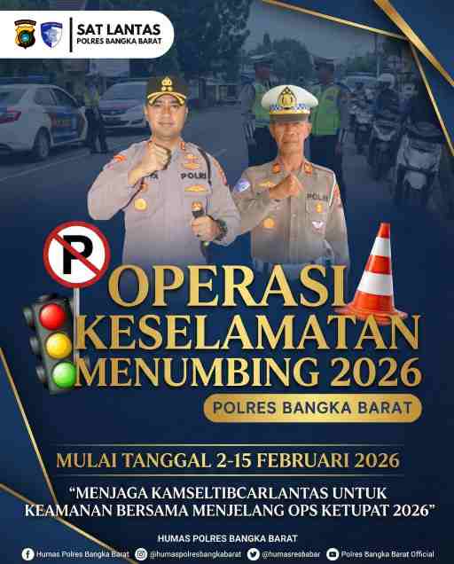 Wartapublik.com, BANGKA BARAT — Polres Bangka Barat, Polda Kepulauan Bangka Belitung, menggelar Operasi Keselamatan Menumbing 2026 sebagai upaya meningkatkan kesadaran dan kepatuhan masyarakat dalam berlalu lintas, sekaligus mewujudkan keamanan, keselamatan, ketertiban, dan kelancaran lalu lintas (Kamseltibcarlantas).