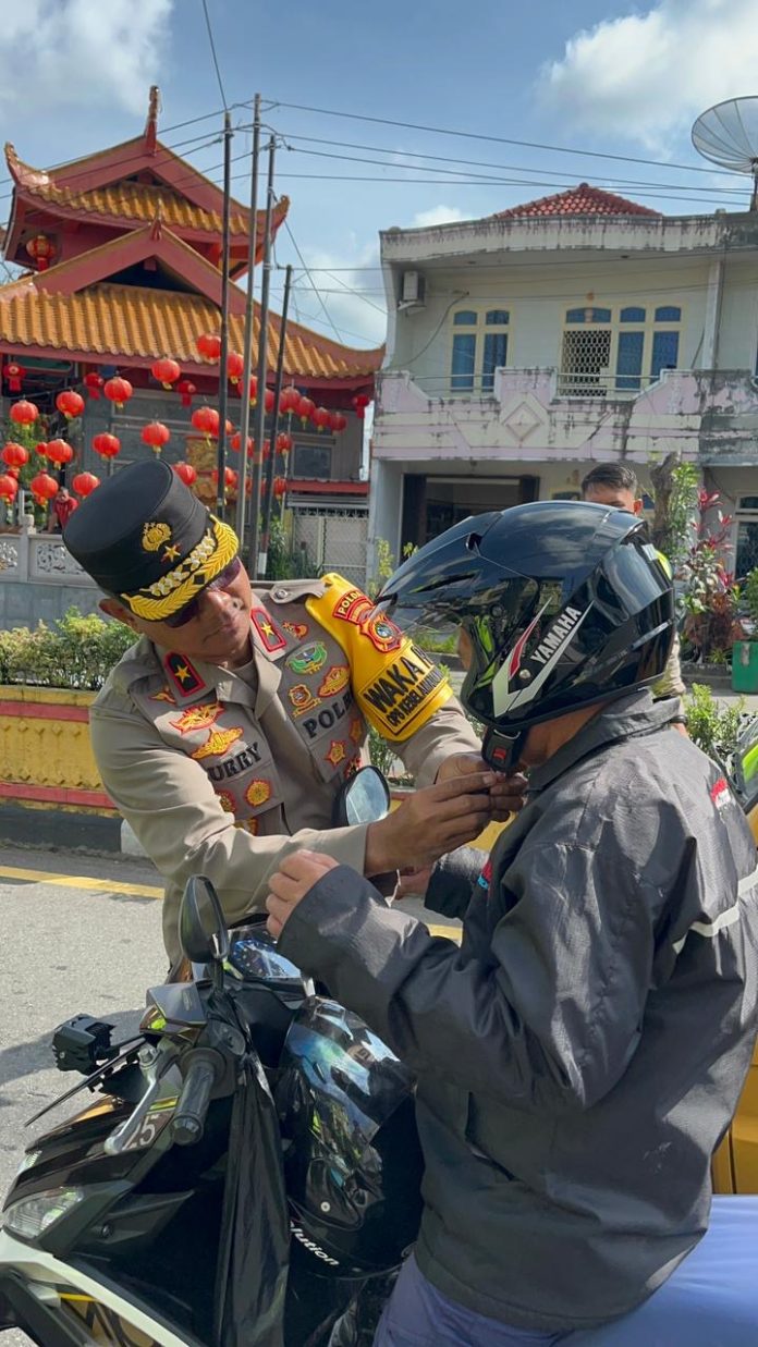 WartaPublik.com, PANGKALPINANG — Wakil Kepala Kepolisian Daerah (Wakapolda) Kepulauan Bangka Belitung, Brigjen Pol Murry Miranda, S.I.K., M.H., memimpin langsung Operasi Keselamatan Menumbing 2026 dengan membagikan helm kepada para pengguna jalan serta mengimbau masyarakat untuk tertib berlalu lintas, Selasa (10/2/2026).