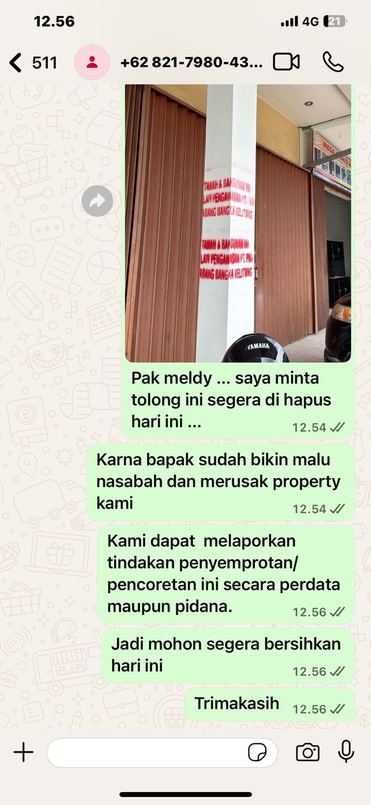“Saya keberatan karena tindakan itu dilakukan tanpa komunikasi langsung dan menimbulkan kerugian bagi usaha saya,” tulis Vinsensia.