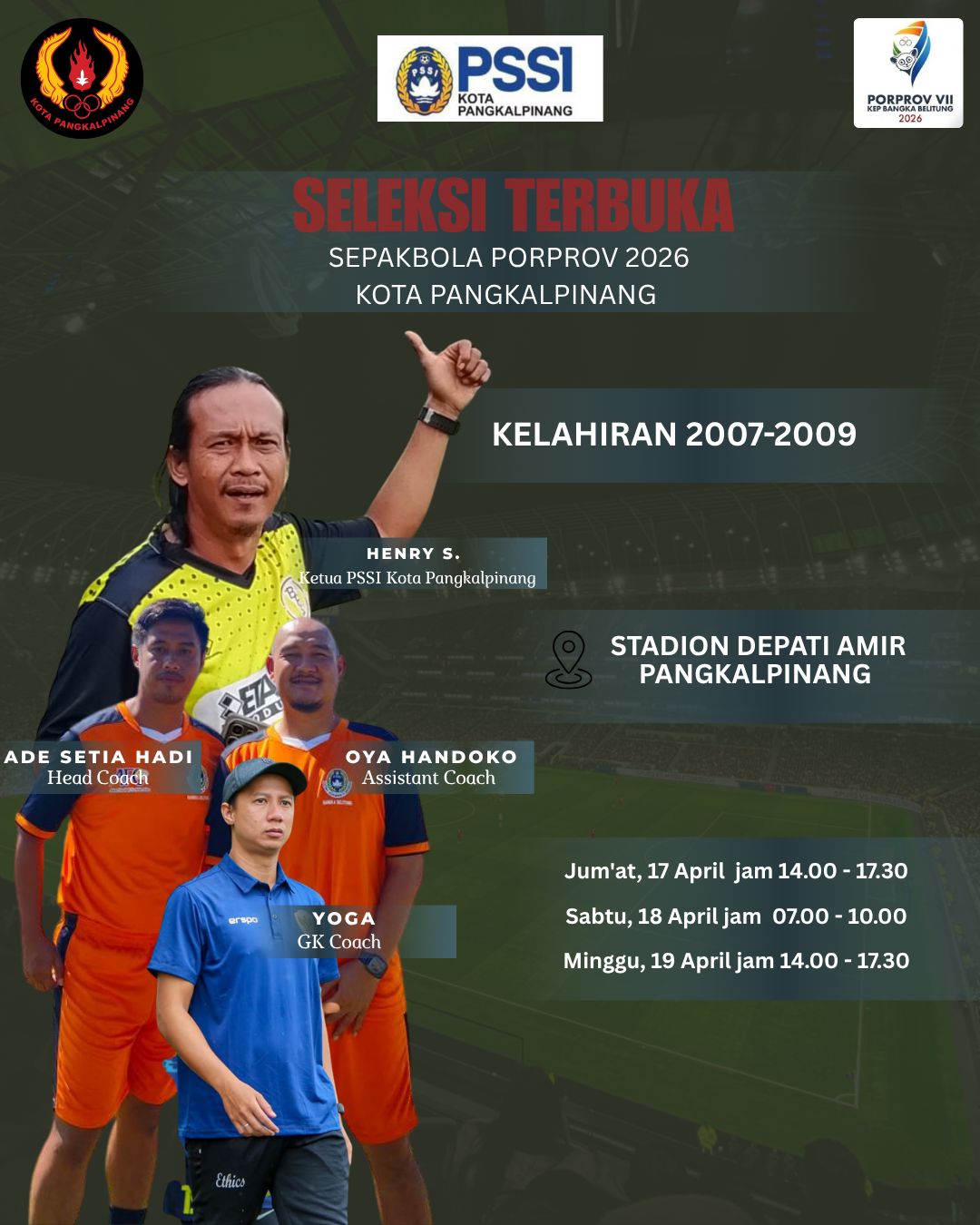 Seleksi ini diperuntukkan bagi pemain muda kelahiran 2007 hingga 2009 yang berdomisili di Pangkalpinang dan sekitarnya. Kegiatan akan berlangsung di Stadion Depati Amir selama tiga hari, mulai 17 hingga 19 April 2026.