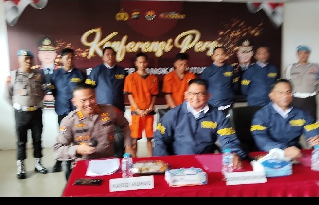 Konferensi Pres , Kabid Humas Polda Babel Kombes Pol Fauzan Sukmawansyah, S. I. J,,M.H bersama Direktur Reserse Kriminal Umum Polda Babel Kombes Pol Muhammad Rivai Arvan ungkap kasus pembunuhan Dir...